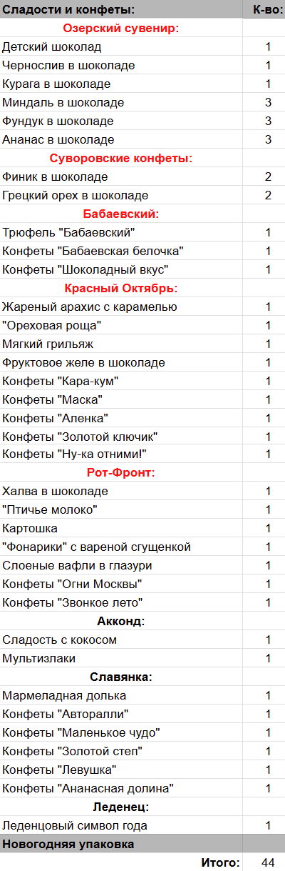 Интернет-магазин сладких новогодних подарков работает от производителя напрямую, за счет чего мы убираем посредников и снижаем цены на детские новогодние подарки. Кроме того, наша логистика позволяет доставить заказ практически в любой город за наш счет. Все цены на сладкие подарки актуальны