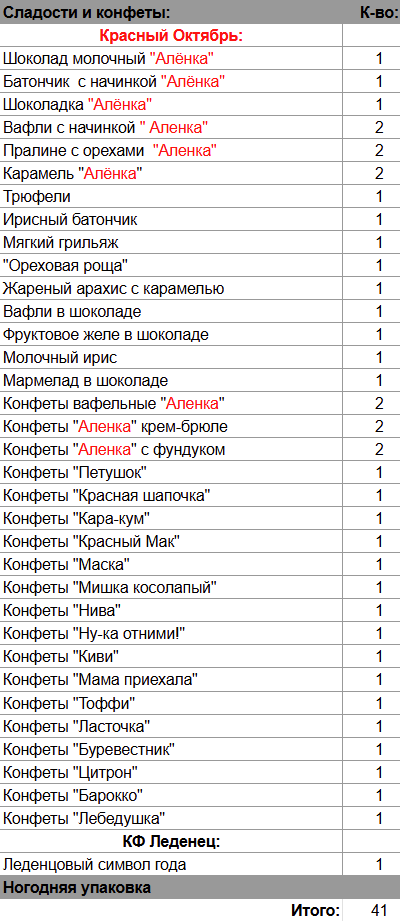 Кол-во сладостей: 41 шт.