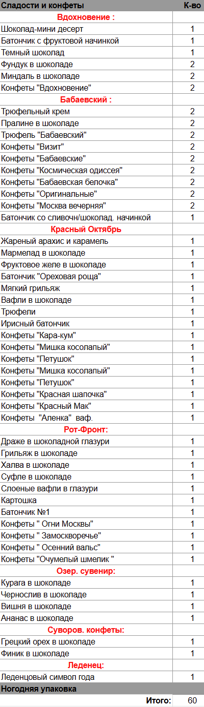 Кол-во сладостей: 60 шт.
